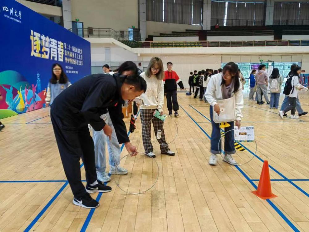 四川大學(xué)學(xué)生體驗(yàn)傳統(tǒng)體育項(xiàng)目——滾鐵環(huán)